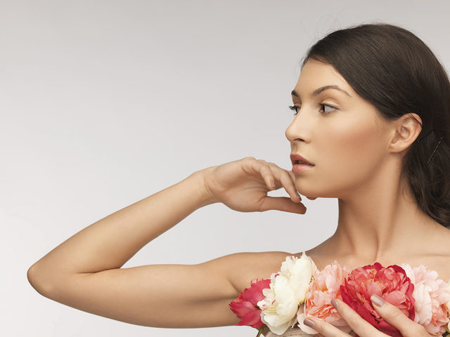 relaxed woman with flowers